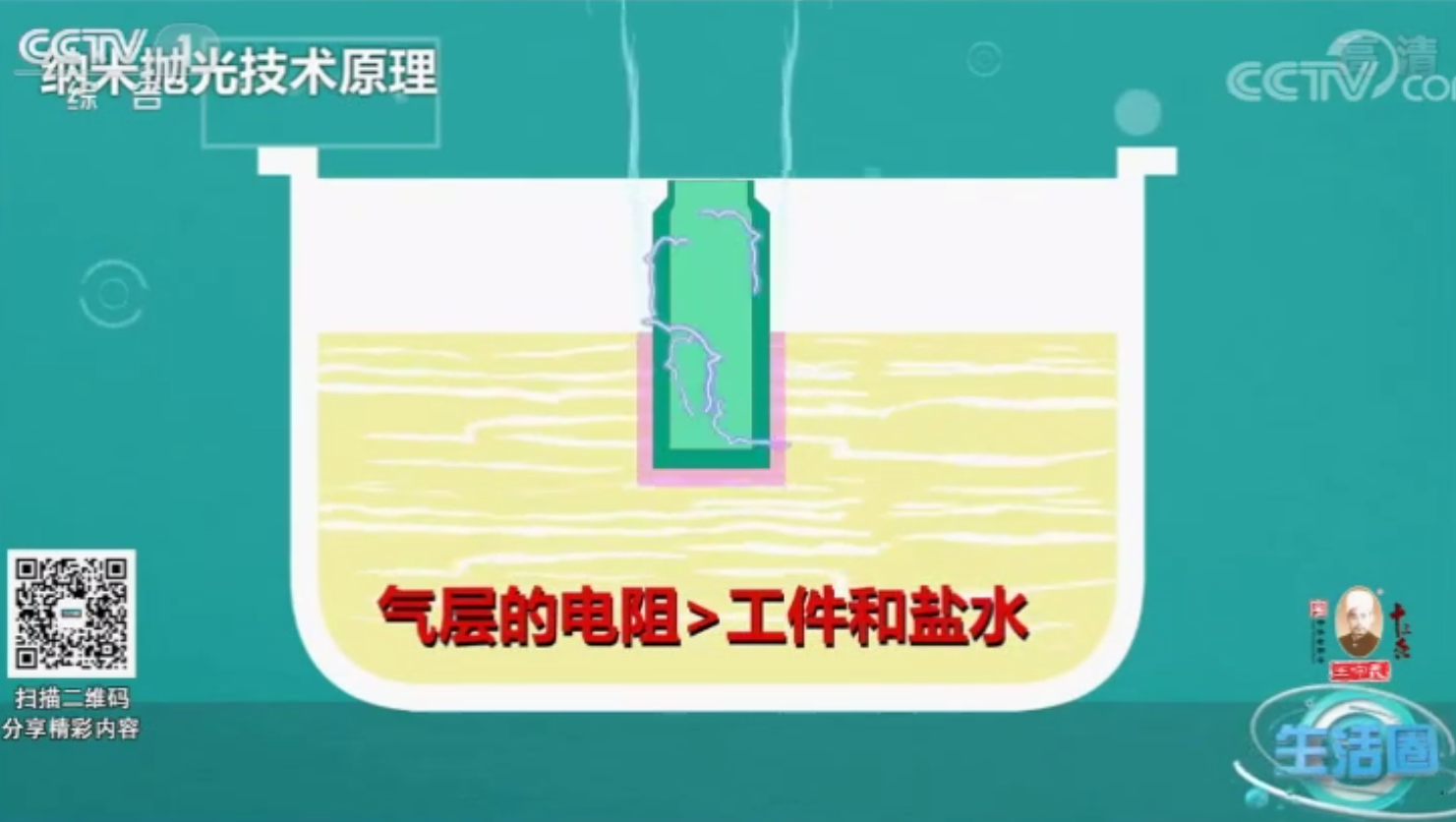 等离子纳米抛光技术是一种全新的金属表面处理工艺——仅在工件表面的分子层与等离子反应,影片中通过抛光与未抛光物体通过实验做比较,凸显抛光技术的优势,尤其是精度控制极高,抛光均匀,通常可控制在0.1微米/分钟,使整个工件表面和死角部位都可以达到一致的镜面效果。因此等离子纳米抛光处理可以活化工件表面,去除表面分子污染层,交叉链接表面化学物质。一方面增强抛光面的抗腐蚀性能,抛光过程中使工件表面产生一层钝化膜,另一方面能使其保持耐久光亮,有效防止氧化。