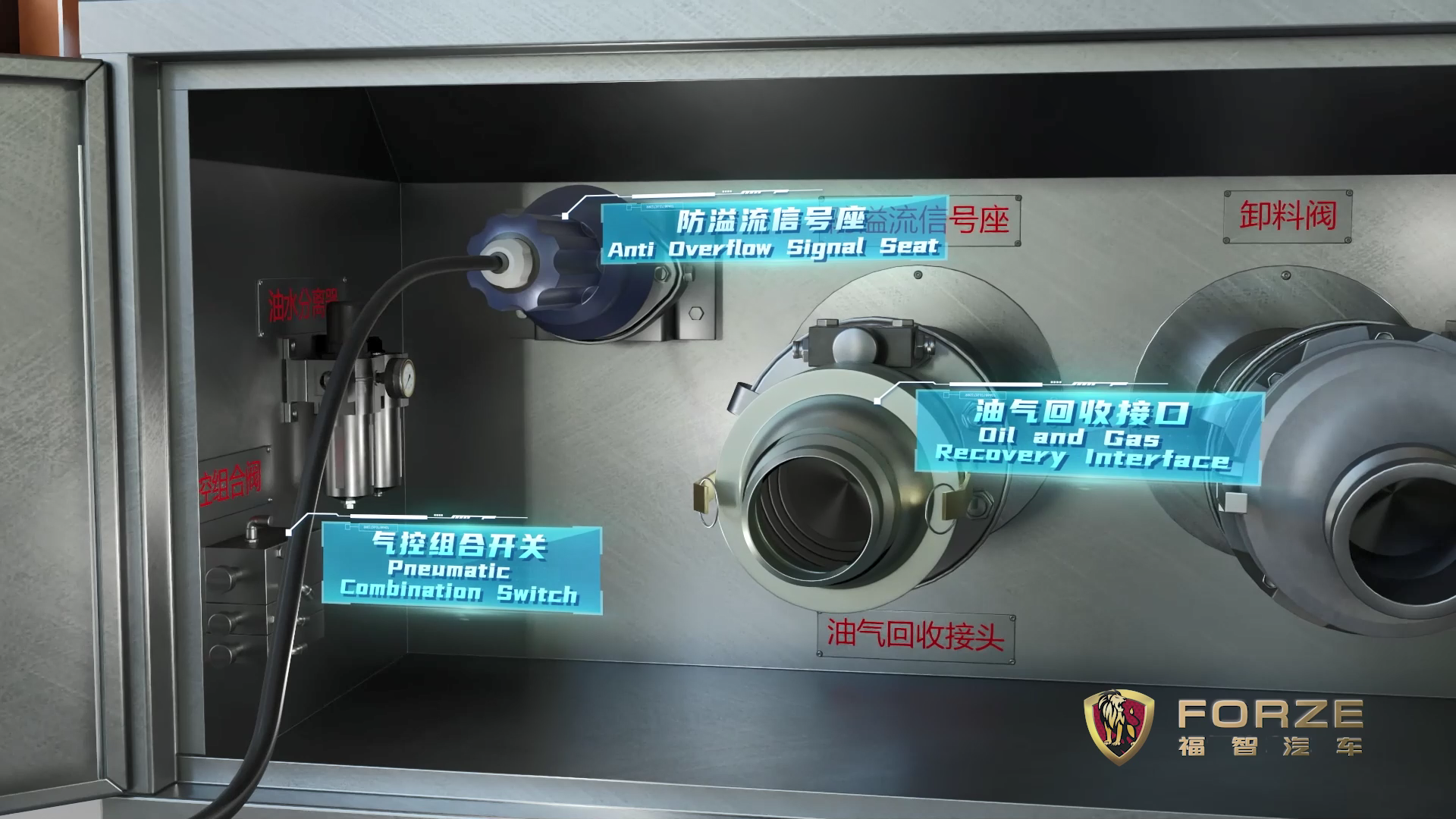 福智油罐汽车车体结构及功能3D动画展示